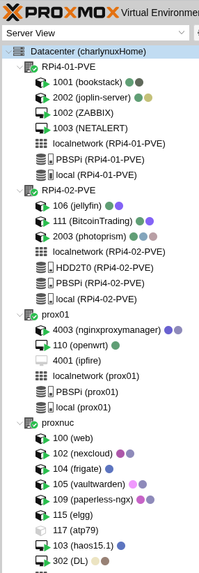 - proxnuc : un NUC Intel, plus puissant, dédié aux applications plus exigeantes comme Nextcloud ou Paperless.